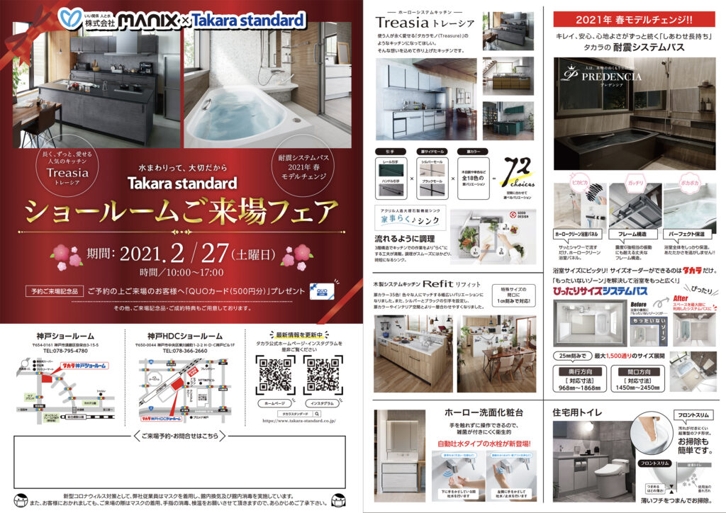 2月のDAICリフォーム相談会 (タカラスタンダード 神戸HDCショールーム)のご案内です。詳細は以下のチラシをご確認下さい。